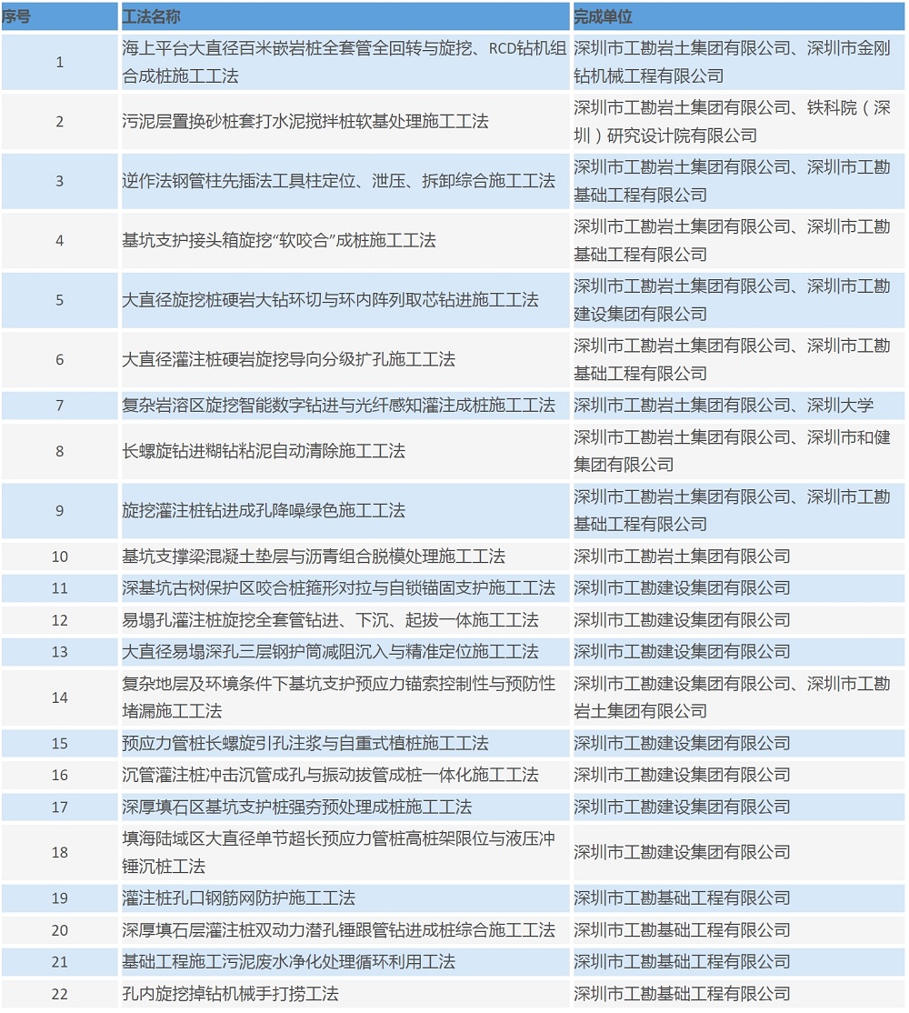 近日,廣東省住房和城鄉(xiāng)建設廳公布了2023-2024年度工程建設省級工法名單,工勘集團22項施工工法榜上有名,刷新了集團年度科研創(chuàng)新成果通過省級工法評審數(shù)量的最高紀錄。在本次省級工法評選活動中,省住建廳共受理企業(yè)申報工法1886項,并組織專家進行了嚴格的全過程“背靠背”線上評審,最終審定567項企業(yè)工法為“2023-2024年度廣東省工程建設省級工法”。