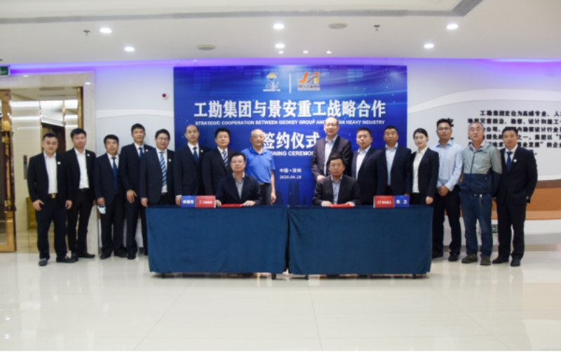 2020年4月18日上午,工勘集團(tuán)與徐州景安重工機(jī)械制造有限公司(以下簡(jiǎn)稱(chēng)景安重工)戰(zhàn)略合作框架協(xié)議簽約儀式在工勘集團(tuán)總部舉行。景安重工董事長(zhǎng)陳衛(wèi)、總經(jīng)理魏垂勇、副總經(jīng)理李景峰,工勘集團(tuán)董事長(zhǎng)林強(qiáng)有,工勘巖土集團(tuán)副董事長(zhǎng)雷斌、總經(jīng)理李紅波、總工程師王賢能、副總經(jīng)理付文光、李新元等雙方領(lǐng)導(dǎo)及相關(guān)部門(mén)負(fù)責(zé)人出席了簽約儀式,深圳市土木建筑學(xué)會(huì)巖土工程專(zhuān)業(yè)委員會(huì)主任劉小敏等嘉賓受邀見(jiàn)證了簽約。